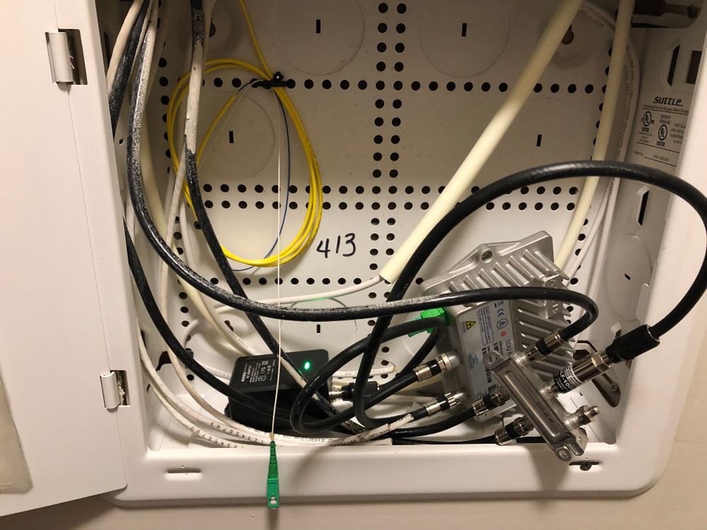 An optical network terminal or ont is a unit typically located on the side of your house or in your garage.